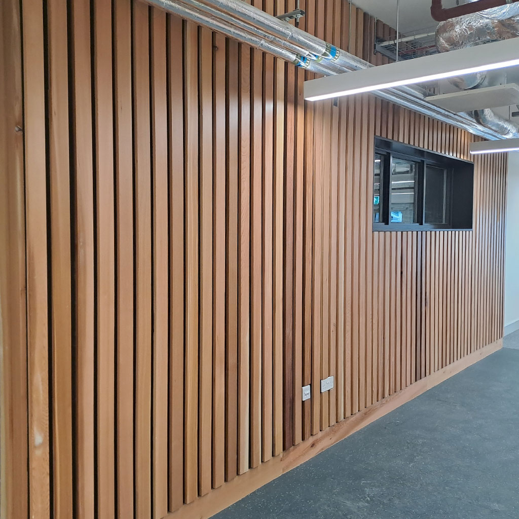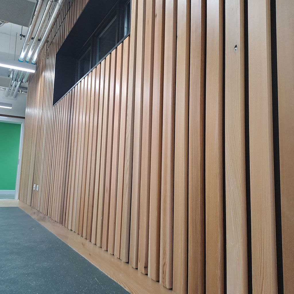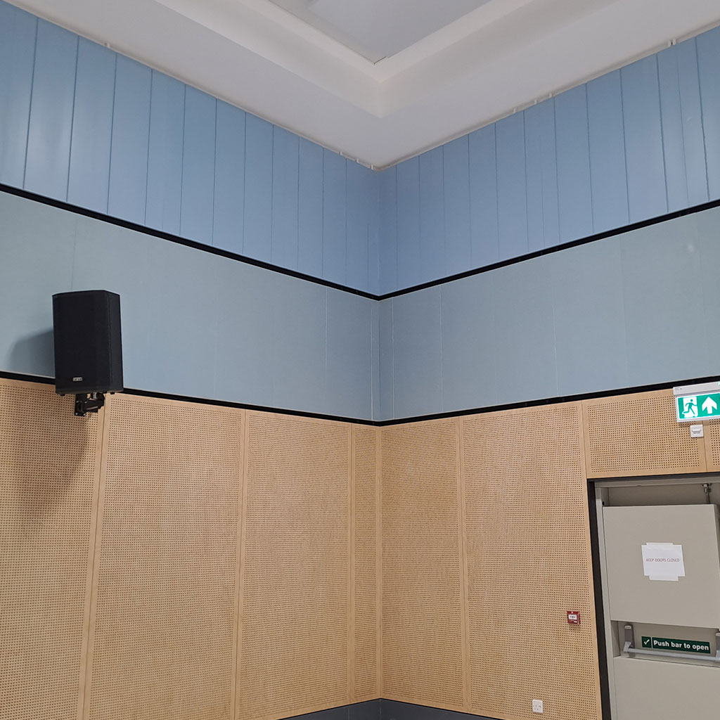 London Wall Design acoustics division installed a variety of products including the Harmony Timber Slatted, Concord Perforated Timber and Comfort Fabric Wall Panels. Working with our contractors N H Etheridge we successfully fitted over 300 sqm of sound absorption ranging from Class A-C for this first class education facility.